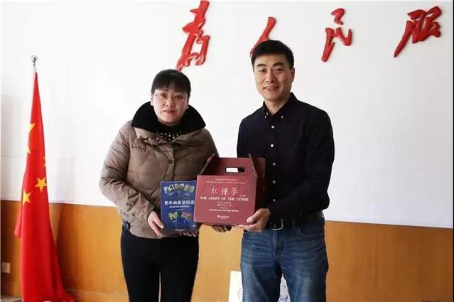 上海外语教育出版社山东分公司副总经理武文博向烟台一中副校长鞠静赠书