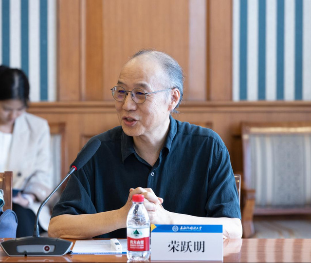 荣跃明主任以《上海国际化大都市建设中的全球文化贡献》为题发言,他主张“要以习近平文化思想为指导,坚持中国特色社会主义文化发展道路和人民中心地位,践行‘人民城市’重要理念,激发人民群众文化创新创造活力,同时对照国际标准,突出上海特色,彰显上海城市精神和品格,打响‘上海文化’品牌,推动上海社会主义国际文化大都市建设高质量发展”。