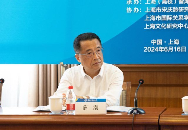 6月16日下午,由上海外国语大学主办,上海(高校)智库习近平外交思想研究院承办,上海市宋庆龄研究会、上海市国际关系学会、上海文化研究中心协办的“上海市建设习近平文化思想最佳实践地专项课题‘新时代上海在推进文明交流互鉴和国际文化合作中的特有地位与作用路径研究’讨论会”在上海外国语大学虹口校区隆重举行。上海市十四届人大常委会副主任、上海市宋庆龄研究会会长薛潮;上海外国语大学校长李岩松;上海国际关系学会原会长杨洁勉;上海文化研究中心主任荣跃明;上海外国语大学国际关系与公共事务学院院长郭树勇等24名专家学者出席会议。