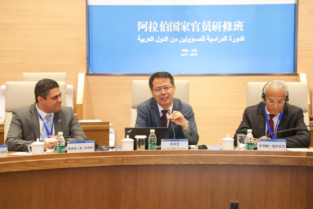 6月23日,中阿改革发展研究中心首期突尼斯官员研修班在上海外国语大学松江校区举办。来自突尼斯外交部、总理府、通讯技术部、文化部等部委的21位官员来华参加此次研修。中心秘书处积极贯彻学校“三进”要求,在课程安排等环节突出了对习近平外交思想、习近平经济思想及相关重要论述的解读。上海市智库习近平外交思想研究院首席专家、上海外国语大学国际关系与公共事务学院院长郭树勇教授应邀为研修班做了题为“准确理解习近平外交思想”的英文授课。