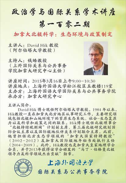 主讲人:David Hik 教授 (阿尔伯塔大学教授)