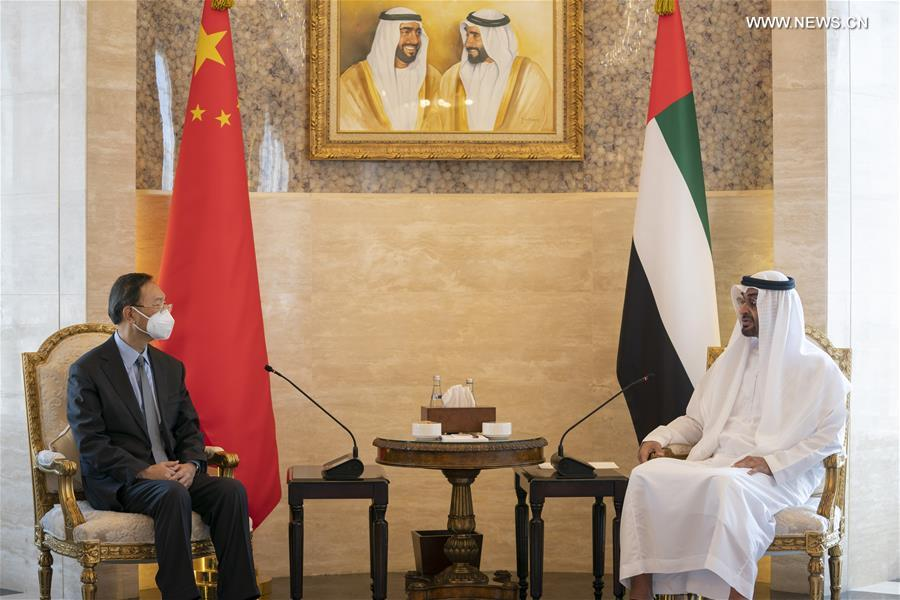 ونقل يانغ، وهو أيضا مدير مكتب لجنة الشؤون الخارجية باللجنة المركزية للحزب الشيوعي الصيني، التحيات الحارة من الرئيس الصيني شي جين بينغ إلى رئيس الإمارات الشيخ خليفة بن زايد آل نهيان وولي العهد.