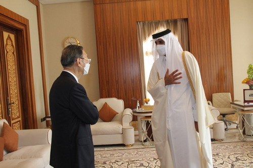 وقال إن قطر حريصة على زيادة تطوير علاقاتها مع الصين، وتعميق الاتصالات الاستراتيجية، وتعزيز التعاون متبادل المنفعة في مجالات الطاقة والاستثمار والاقتصاد الرقمي والثقافة وإنشاء البنية التحتية في إطار مبادرة الحزام والطريق، والسعي باستمرار إلى إحراز تقدم جديد في دفع الشراكة الاستراتيجية بين الصين وقطر.