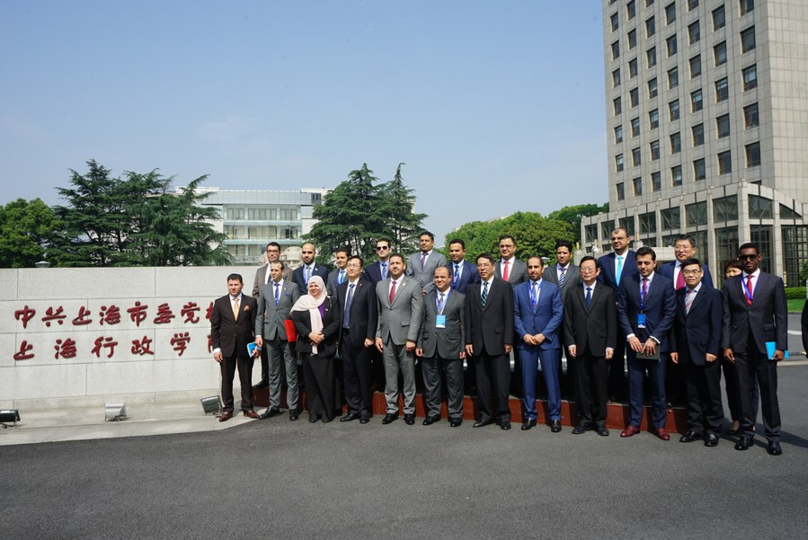 وفد الدبلوماسيين العرب لدى الصين يزور مدرسة الحزب التابعة للجنة الحزب الشيوعي الصيني ببلدية شانغهاي. (صورة مقدمة من مركز الدراسات الصيني العربي للإصلاح والتنمية)