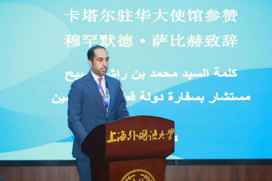 محمد بن راشد صبيح، مستشار سفارة قطر لدى الصين، يلقي كلمة خلال الدورة الدراسية. (صورة مقدمة من مركز الدراسات الصيني العربي للإصلاح والتنمية)