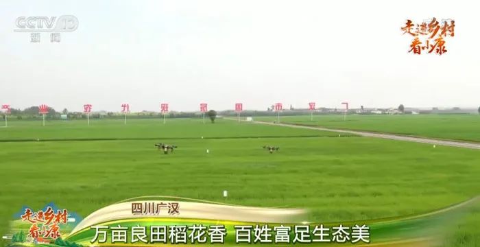 ينمو أكثر من 10000 مو (يساوى مو واحد نحو 0.067 هكتار) من الأرز بشكل جيد في قرية جينهوا في قوانغهان من مقاطعة سيتشوان. وفي الفترة الحرجة في مكافحة الآفات التي تصيب الأرز، يقوم الفنيون بتشغيل الطائرات بدون طيار لحماية النباتات الزراعية، برش رذاذ الماء الناعم في حقول الأرز بالتساوي، وقادت الزراعة العلمية والتكنولوجية طريق التخلص من الفقر.