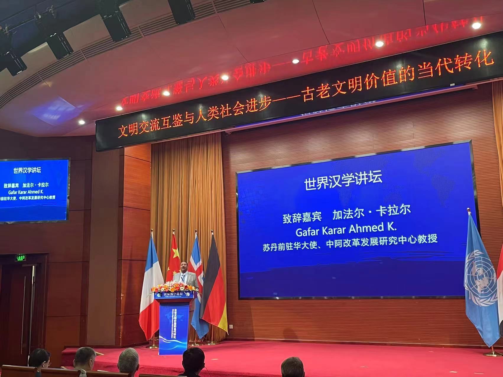شارك السفير بروفسور د. جعفر كرار أحمد الباحث في مركز الدراسات العربي الصيني للإصلاح والتنمية في الندوة الدولية للصينولوجيين الدوليين ، الذي نظمها المركز الدولي للصينولوجيين بالتعاون مع جمعية التعاون الدولي وجامعة اللغات والثقافة ببكين ، والتي عقدت في يوم 17/3/2023 في جامعة اللغات والثقافة وشارك فيها عدداً كبير من الخبراء في الشؤون الصينية من عدة دول . وكانت الندوة بعنوان ( التواصل والتعلم بين الحضارات لتعزيز التقدم الإنساني .. التأثير الحالي للحضارات القديمة )حيث القى البروفسور جعفر كرار كلمة أمام الندوة أشار فيها إلى أن العرب والصينيين لم يبنوا حزاماً اقتصادياً على طريق الحرير القديم فحسب، بل إنهم بنوا أيضاً حزاماً ثقافياً نشطاً وثرياً أسهم في جعل التبادلات الاقتصادية والتجارية أمراً ممكناً، كما أسهم في بناء مناخ للتعايش الثقافي والحضاري سهّل انسياب البضائع والأفراد والاتصالات الإنسانية. وأضاف، لقد حمل بُناة الحزام الثقافي الأول فهماً إنسانياً رفيعاً حيث احترموا الديانات والثقافات المنتشرة على طريق الحرير وحملوا مع السلع والموسيقى والعقاقير والشعر والمدارس والتضامن الإنساني. نمت بفعل هذه المفاهيم التي رسخها الحزام الثقافي الأول التجارة وازدهرت المدن واستوعبت الشعوب على طول الحزام والطريق اختلاف الثقافات واللغات واحترمت الأديان فازدهرت الأسواق. وقال بروفسور جعفر كرار لقد شجع هذا المناخ الجديد على طول الحزام الثقافي الاتصالات الإنسانية وتدفق العلماء والمؤرخين والجغرافيين والخبراء والدعاة والمبشرين والفنانين جنباً إلى جنب مع التجار والمبعوثين الدبلوماسيين. ونوه كرار إلى أن الفترة من القرن السابع الميلادي وحتى القرن الخامس عشر شهدت تلاقح وتبادل ثقافي ثري وسلمي بين الثقافتين العربية والصينية امتدا لقرون طويلة. ويرى د. جعفر بأن أجيال العرب والصينيون الحالية بنت حوارها الثقافي والحضاري الراهن على ذلك التراث الثري. ويقول بروفسور جعفر إن المطلوب من الأجيال الجديدة المنشغلة حالياً في بناء الحزام والطريق أن تبني أيضاً حزاماً ثقافياً جديداً يسهم في تعزيز التواصل الإنساني والثقافي، حيث يحدثنا التاريخ كما تشير هذه الدراسة إلى أن بناء حزام ثقافي على طول الحزام الطريق سيسهم حتماً في السلام والاستقرار والازدهار الاقتصادي على طول الحزام والطريق الجديد.