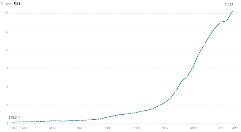الشكل رقم (1): الناتج القومي الاجمالي للصين خلال الفترة من عام 1978- 2017