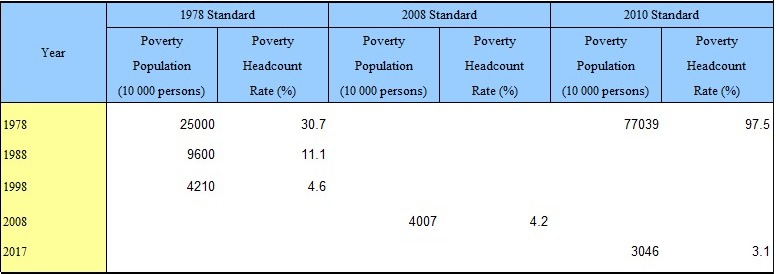 المنشور على “موقع صحيفة الشعب الصينية” في مطلع العام 2018، بالإضافة الى التقرير السنوي للأحصائات 2018، فإن مَعامل “جيني” – الذي يَقيس فجوة الدخل – قد بلغ 0.467 في العام 2017، مقارنة بأعلى نسبة بتاريخ الصين منذ الانفتاح حيث بلغت 0.491 للعام 2008، وهو يُمثل انخفاضاً جيداً، ولكنه أشار بأن هذا ما زال يُصنّف بأنه “خطير نسبياً”، وأن الصين ستركز على نظام عدالة توزيع الدخل لخفض معدل “جيني” (People’s Daily Online، 2018) (National Bureau of Statistics of China، 2018).