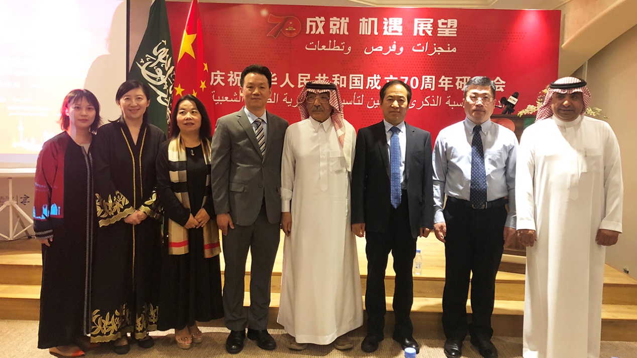 في الفترة ما بين اليوم 1 واليوم 5 من شهر سبتمبر، سافر كل مننائب المدير لمركز الدراسات الصيني العربي للإصلاح والتنمية ومدير إدارة البحوث في جامعة شنغهاي للدراسات الدولية الدكتور وانغ يويونغ وا الأمين العام لمجلس الإدارة والمدير التنفيذي لمركز الدراسات الصيني العربي للإصلاح والتنمية الدكتور وانغ قوانغدا ونائبة الأمين العام لمجلس الإدارة لمركز الدراسات الصيني العربي للإصلاح والتنمية الدكتورة تشن يويهيانغ وغيرهم من ثلاثة رؤساء المراكز المشاركة والباحثين إلى السعودية لحضور الندوة بعنوان "منجزات وفرص وتطلعات: العلاقات الصينية السعودية " بمناسبة الذكرى السبعين لتأسيس جمهورية الصين الشعبية، والتي أقامها مركز البحوث والتواصل المعرفي السعودي بالتعاون مع سفارة الصين لدى المملكة، ومعهد الصين للدراسات الدولية، ومركز الدراسات الصيني العربي للإصلاح والتنمية. حضر السفير الصيني لدى السعودية تشن ويتشينغ الندوة، حيث شهدت تقديم 12ورقة علمية وزعت على جلستين.
