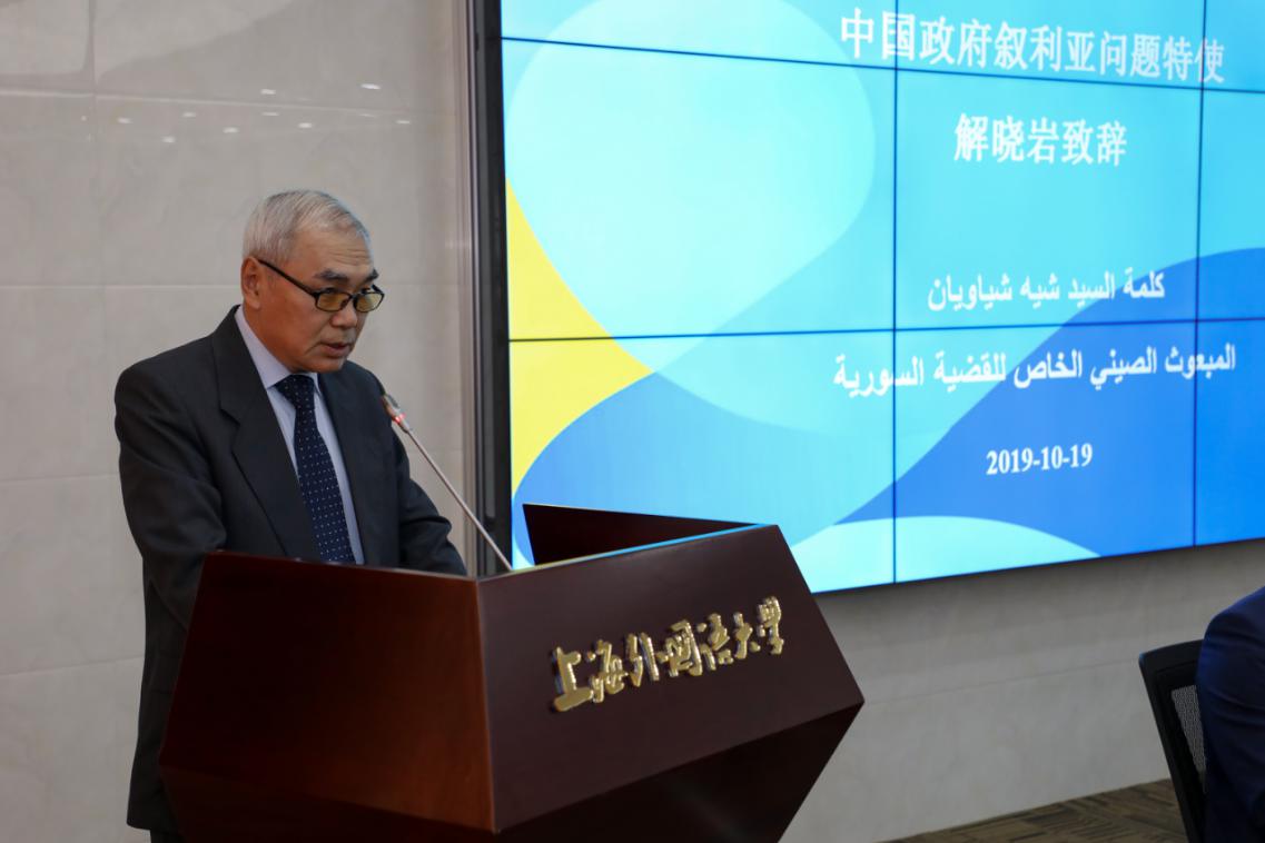 رحب المبعوث الصيني الخاص للقضية السورية شيه شياويان نيابة عن وزارة الخارجية الصينية بالمشاركين وشكر جامعة شنغهاي للدراسات الدولية والمركز على جهودهم الكبيرة لإنجاح هذه الدورة. وأشار إلى أن سوريا كانت واحدة من أوائل الدول العربية التي أقامت علاقات دبلوماسية مع جمهورية الصين الشعبية، وعلى الرغم من الاضطرابات في سوريا في السنوات الأخيرة، فلم تتغير الصداقة الصينية السورية. فيما يتعلق بالقضية السورية، التزمت الصين دائمًا بحل سياسي وشجعت على التشاور والتفاوض بين الأطراف المعنية. ستواصل الصين دعمها القوي للجانب السوري في حماية السيادة الوطنية واستقلالها ووحدة أراضيها، وتدعم حق الشعب السوري في تقرير مصير بلدهم ومستقبله، كما سوف تواصل تقديم المساعدات الإنسانية للاجئين داخل سوريا وخارجها.