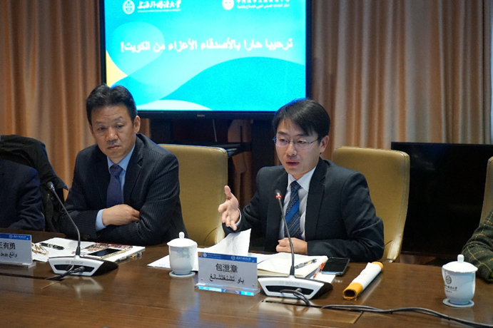 قدم أ. د. وانغ يويونغ إنجازات التي حصلت عليها مبادرة "الحزام والطريق" في السنوات الست الماضية، وهذا أيضًا رد لاهتمامات الجانب الكويتي. وأشار إلى أن مبادرة "الحزام والطريق" قد حققت الآن "أربعة تحولات" ، أي التحول من التعاون الثنائي إلى التعاون العالمي، والتحول من بناء الممرات الاقتصادية إلى تنفيذ المشاريع المادية، والتحول من مجال البنية التحتية إلى مجالات تعاون متنوعة والتحول من التنمية الاقتصادية إلى خدمة بناء مجتمع مصير مشترك للبشرية. قال أ. د. وانغ إنه يتعين على الصين والكويت تعزيز التبادلات الثقافية والتعاون التعليمي، ومن المأمول أن توقع جامعة شنغهاي للدراسات الدولية وجامعة الكويت اتفاقية تعاون في المستقبل، وتشجع الكويت على إنشاء قسم اللغة الصينية في جامعاتها.