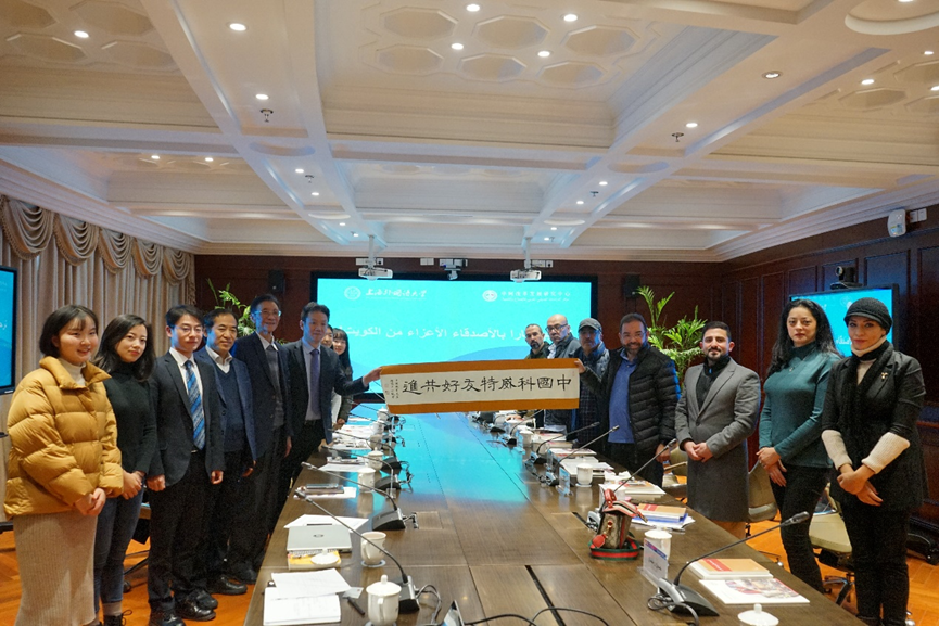 في يوم 18 من ديسمبر، استضاف مركز الدراسات الصيني العربي للإصلاح والتنمية (المشار إليه فيما يلي باسم "المركز") وفداً إعلامياً كويتياً في حرم هونغكو بجامعة شنغهاي للدراسات الدولية. يتكون الوفد من 10 ممثلين عن صحيفة الأنباء الكويتية. حضر الجلسة كل من أ. د. تشو ويليه مدير لجنة الخبراء للمركز، وأ. د. وانغ يويونغ نائب مدير المركز، وأ. د. دينغ جون نائب رئيس جمعية شنغهاي الإسلامية، وأستاذ في معهد دراسات الشرق الأوسط بالجامعة،وأ. د. باو تشنغتشانغ أستاذ مشارك ومدير مساعد لمعهد دراسات الشرق الأوسط بالجامعة وأجروا نقاشات متعمقة مع الوفد الإعلامي الكويتي حول العلاقات الصينية الكويتية والتعاون بين الجانبين في إطار مدينة الحرير والجزر الخمسة والوضع في الخليج والتعاون الإعلامي الصيني الكويتي.