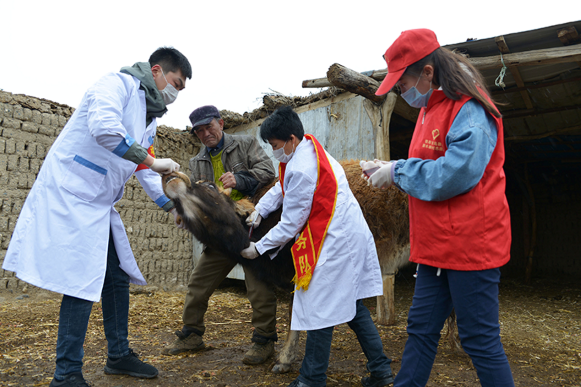14 ابريل 2020، فريق من البياطرة يلقح لماشية احد الفلاحين الويغور بشينجيانغ. التصوير: خه تشنغ تشيانغ، صحيفة الشعب اليومية أونلاين