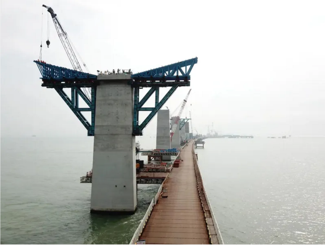 بناء أعلى جسر بحري في العالم يجري على قدم وساق بشرق الصين
