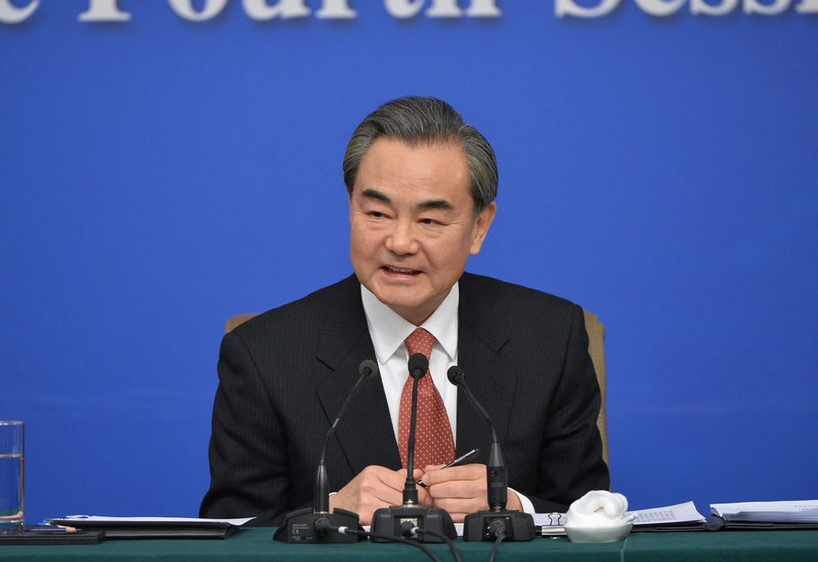 وانغ يي يحضر مؤتمرا صحفيا على هامش الدورتين السنويتين (8 مارس 2018)