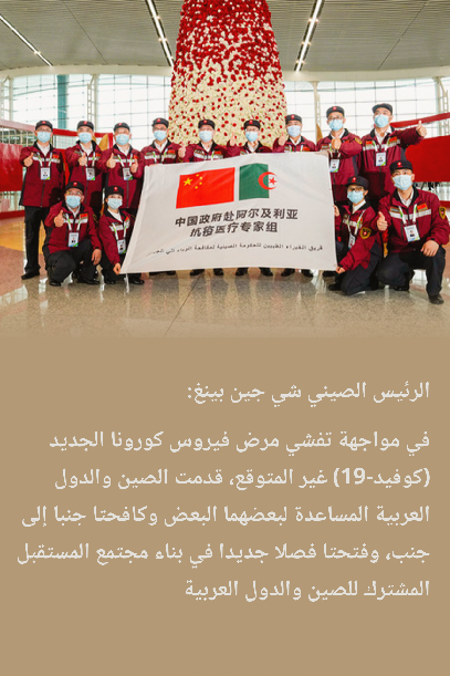 وفي رسالته، أوضح الرئيس شي أنه "في مواجهة تفشي مرض فيروس كورونا الجديد (كوفيد-19) غير المتوقع، قدمت الصين والدول العربية المساعدة لبعضهما البعض وكافحتا جنبا إلى جنب، وفتحتا فصلا جديدا في بناء مجتمع المستقبل المشترك للصين والدول العربية".
