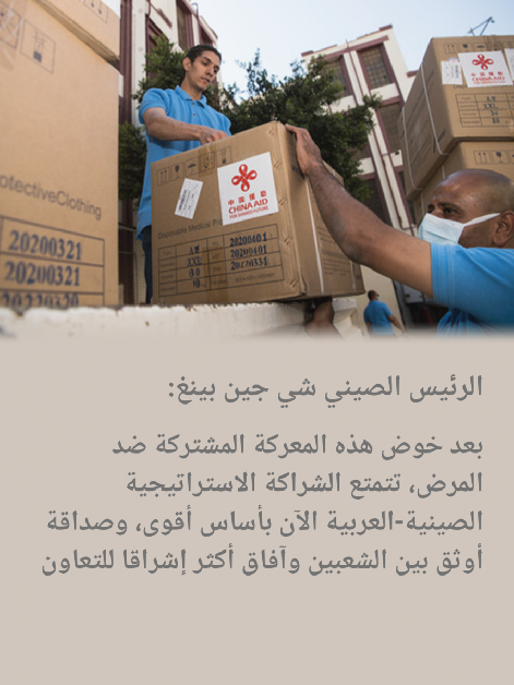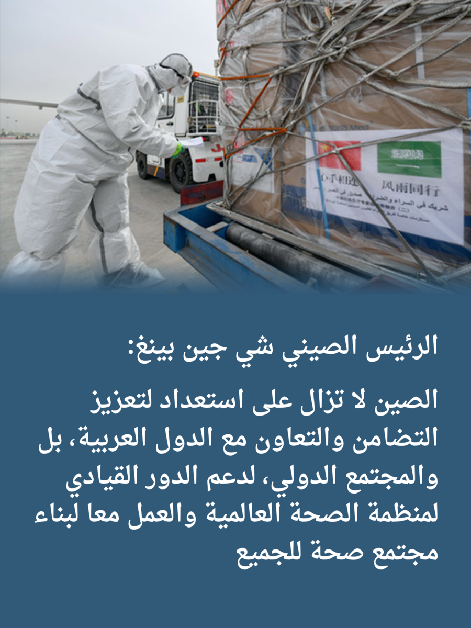 وقال إنه "بعد خوض هذه المعركة المشتركة ضد المرض، تتمتع الشراكة الاستراتيجية الصينية-العربية الآن بأساس أقوى، وصداقة أوثق بين الشعبين وآفاق أكثر إشراقا للتعاون".