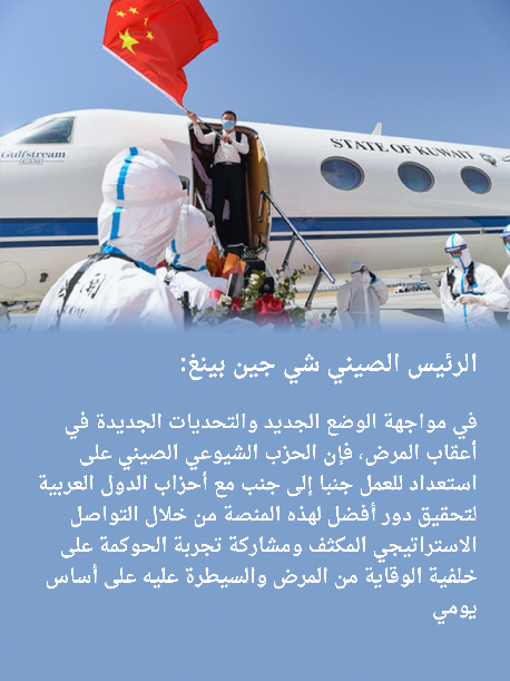 وأوضح الرئيس شي أن حوار الأحزاب السياسية بين الصين والدول العربية، منصة مهمة للتبادلات والتعاون بين الطرفين، لافتا إلى أنه في مواجهة الوضع الجديد والتحديات الجديدة في أعقاب المرض، فإن الحزب الشيوعي الصيني على استعداد للعمل جنبا إلى جنب مع أحزاب الدول العربية لتحقيق دور أفضل لهذه المنصة من خلال التواصل الاستراتيجي المكثف ومشاركة تجربة الحوكمة على خلفية الوقاية من المرض والسيطرة عليه على أساس يومي.