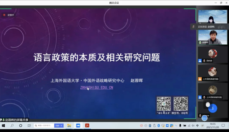 Professor Zhao Ronghui from SISU focused her speech on various issues concerning language policies. She made a diachronic analysis of the relationships between China’s social linguistics and language policies studies, pointing out that the nature of language policy must be understood within its social and historical contexts. Future studies can combine social linguistics and language policy research.