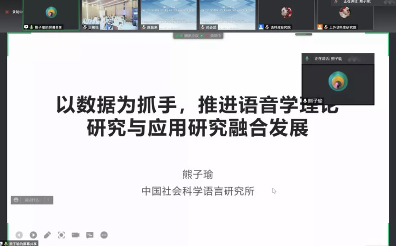 Xiong Ziyu, a full-time researcher from China’s Social Science Academy, made a speech titled as “Research and Applications of Phonetics Based on Data”. Professor Xiong introduced three types of speech sound corpus and databank and then presented how to conduct data-driven research and its applications in a wide array of areas.